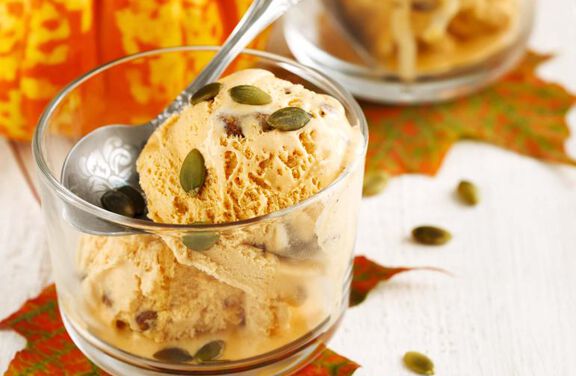 The spices of chai tea perfectly complement the classic pumpkin spice flavors in this delectable fall ice cream.